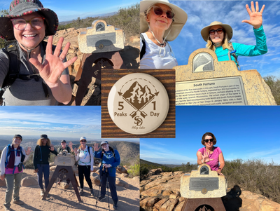 Congrats to the ladies who completed our first 5 Peak Challenge in 1 day in our group, hosted by leader Kim B! The 5-Peak challenge originally started in 2015 by Mission Trails Regional Park but over the years it is still remembered and many people have taken it to the next level by completed all 5 trailheads (Cowles Mountain, Pyles Peak, Kwaay Pay, North Fortuna, South Fortuna) in 1 day! Including these brave ladies in our group! The 5-Peak Challenge will continue to be remembered throughout the years in San Diego! Special button was given after completion, also available on our shop if you want to do this challenge yourself!